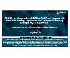 A BCMA-specific allogeneic CAR-T cell therapy (CB-011) genome-engineered to express an HLA-E fusion transgene to prevent immune cell rejection